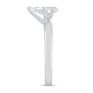 This stunning solitaire engagement ring is a beautiful way to start the rest of your lives together. The ring has a striking and classic pear-shaped diamond that sits beautifully on the gorgeous 14K white gold band. The ring has a total diamond weight of 1 carat.